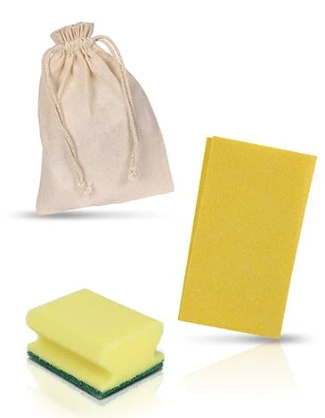Inhalt: Die Bestellung umfasst 36 Reinigungssets. Jede Packung enthält: 1 gelben Putzlappen, 1 gelben Putzschwamm, 1 Baumwolltuch, 1 Flasche Geschirrspülmittel 30ml & 1 Mülltüte