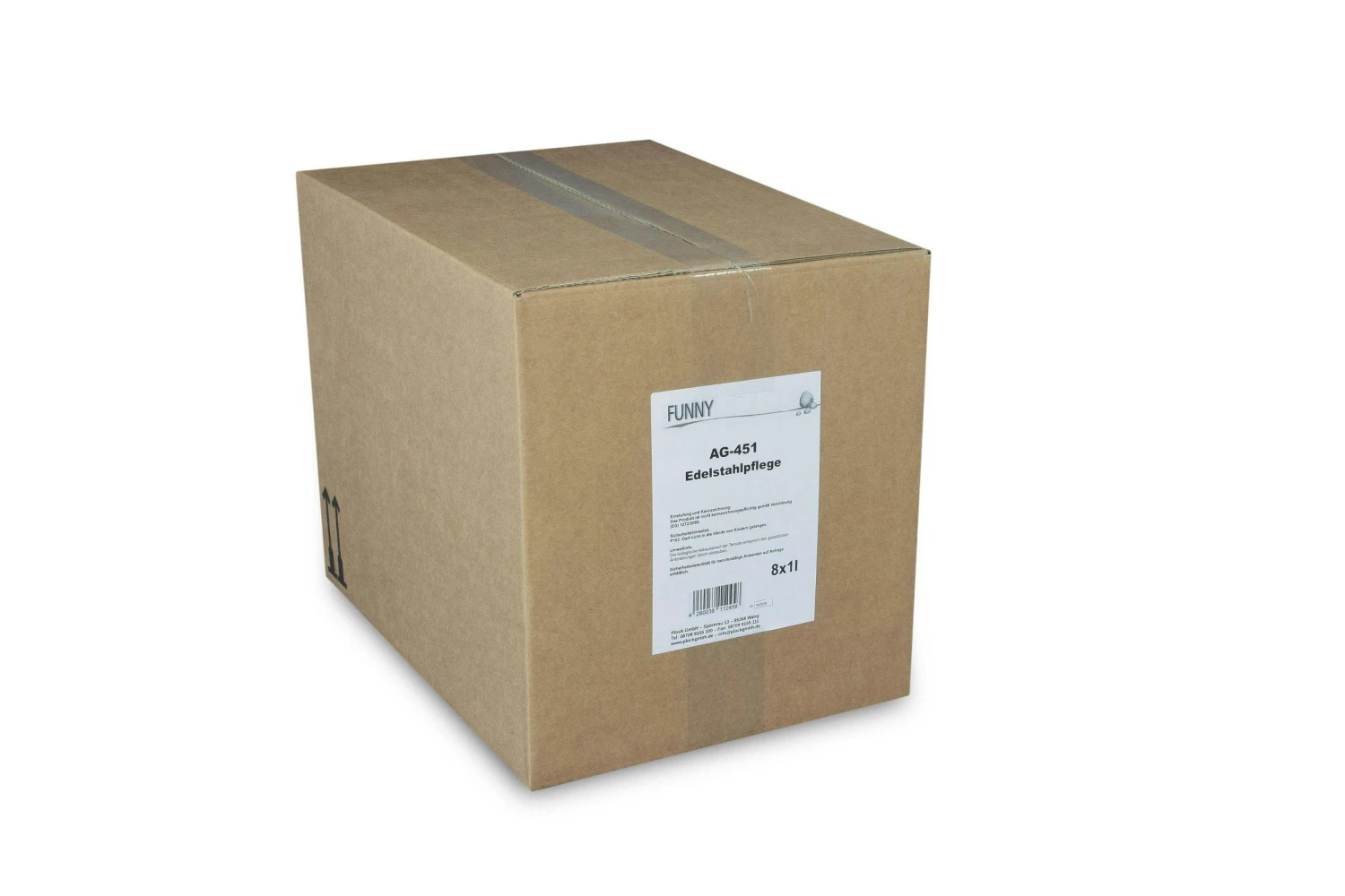 Die Edelstahlpflege der Marke Funny basiert in der Herstellung auf Öl und ist für alle Metalle geeignet. Wenn Sie einen Sprühstoß direkt auf die zu reinigende Fläche geben, werden Fingerabdrücke, Fettflecke und ähnlicher Schmutz leicht entfernt. Per einfachem Wegwischen sorgen Sie nicht nur für strahlenden Glanz vor allem auf Edelstahl, sondern imprägnieren das Metall auch gegen schnelle Wiederverschmutzung. Die Edelstahlpflege ist ergiebig und sparsam in der Anwendung. Lassen Sie alle Oberflächen aus Edelstahl, Eisen, Chrom, Messing und Aluminium auf Hochglanz bringen und sorgen Sie in Ihrem Betrieb für eine Küche und eine Bar, die stets wie neu wirkt. Die Edelstahlpflege kommt in der handlichen 1 Liter Flasche, damit sie überall leicht einzusetzen ist. Die Flasche ist mit einem leichtgängigen Sprühkopf ausgestattet.